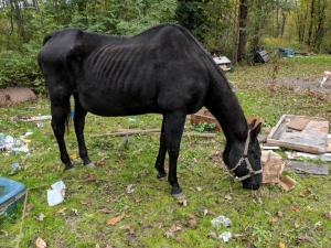 This old mare (foaled in approximately 1996) was surrendered to MHARF in an October 2018 Pine County humane case. She had a ruptured pre-pubic tendon, a large hernia, and a severe rupture in her abdominal fascia. A full veterinary work-up and ultra sound was done at Anoka Equine Veterinary Services. After viewing and discussing results with the entire veterinary team, it was determined that surgical correction was not an option as the mare would not have survived the surgery. We made the sad decision to have her humanely euthanized. Thank you to the entire staff at Anoka Equine for their wonderful care of this old mare in her final days!