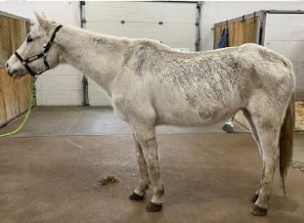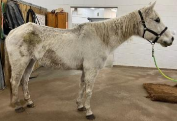This gray gelding (who is in his early 20’s) came to MHARF in a February 2024 Mille Lacs County humane case. He is currently having his intake veterinary care done. We will have more information on him soon.