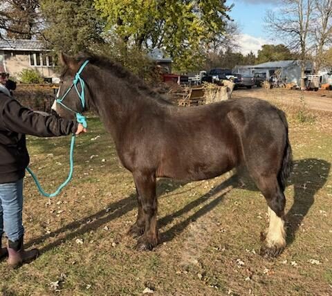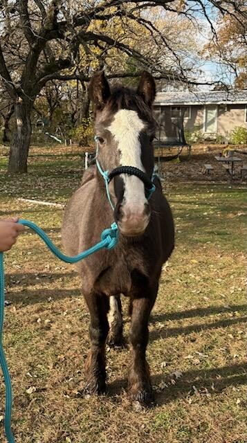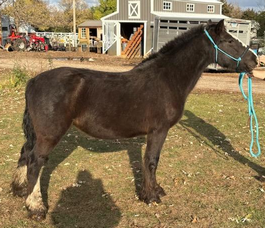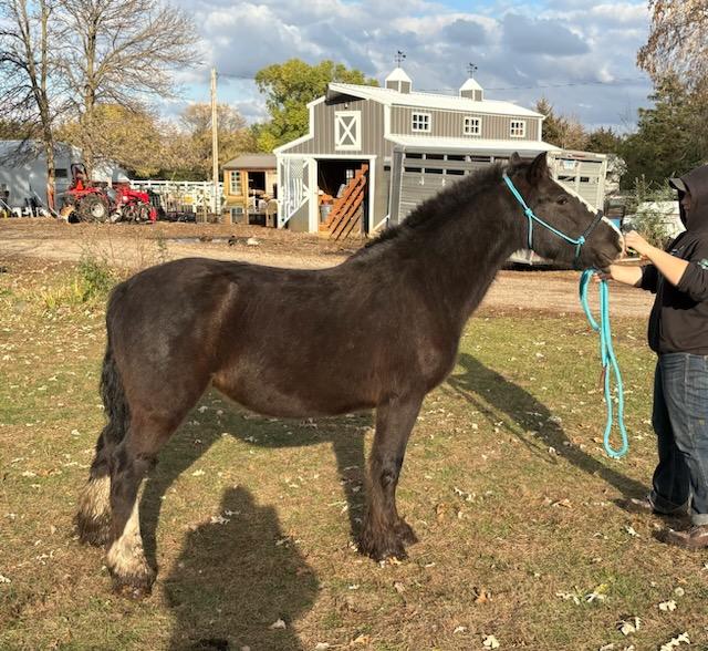 Ricochet is a 2019 Gypsy Vanner mare who came to MHARF in an October 2025 humane case. She had her intake veterinary care done and went to a foster home where she is on a rehabilitation and refeeding regimen.