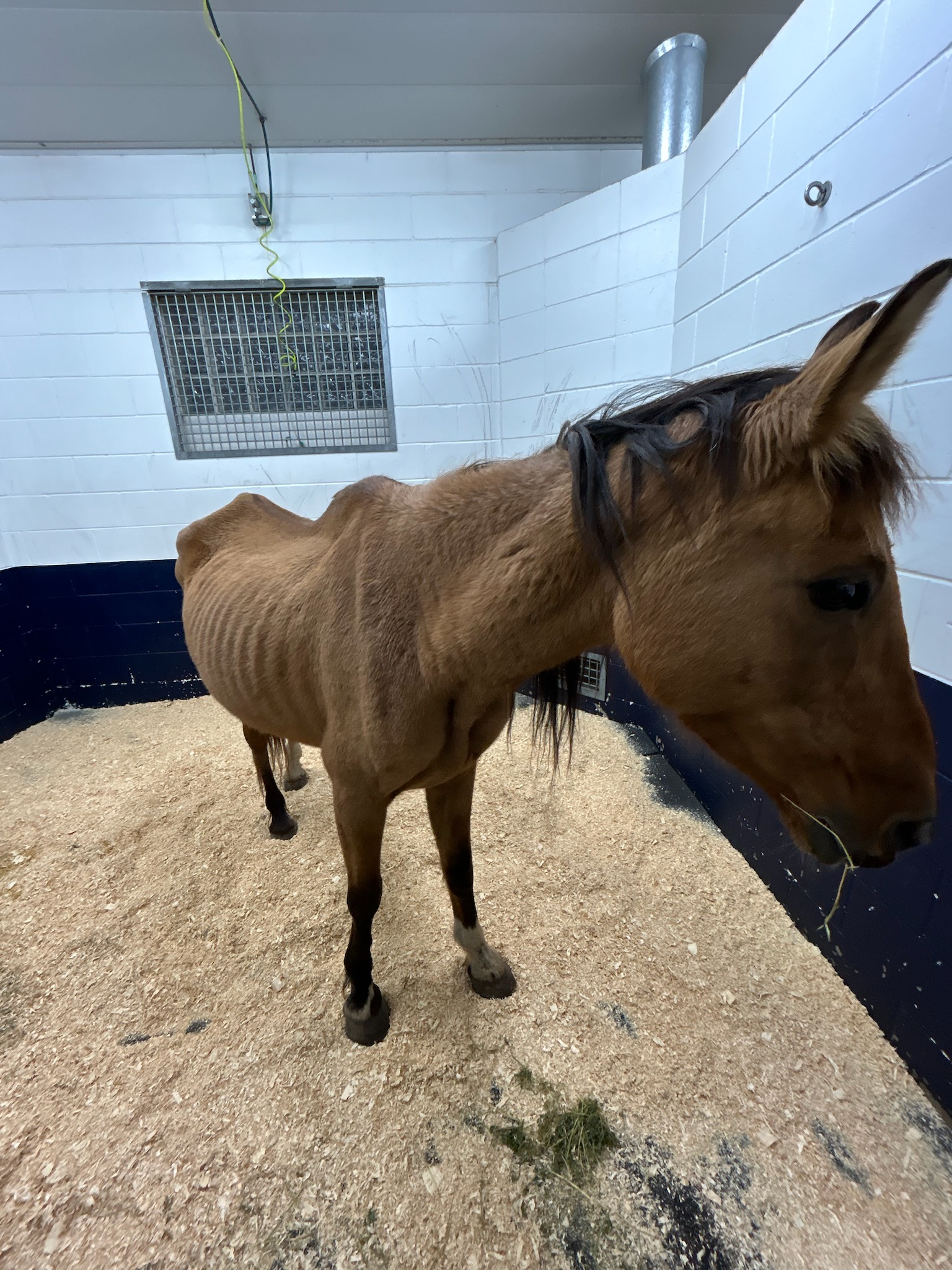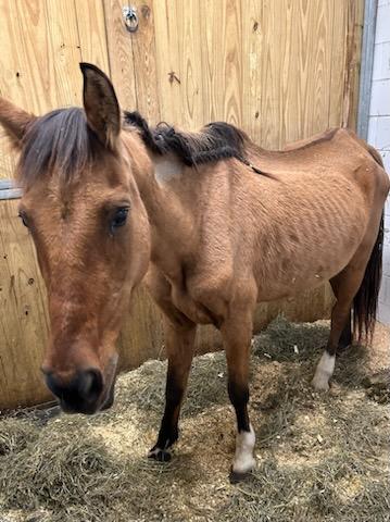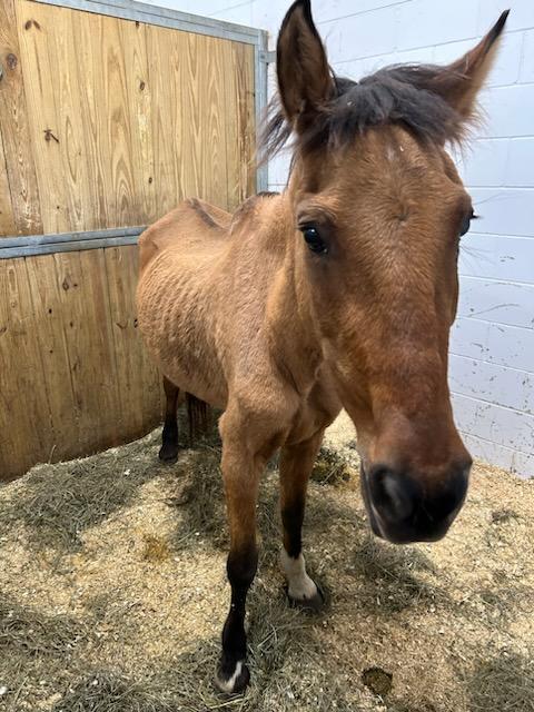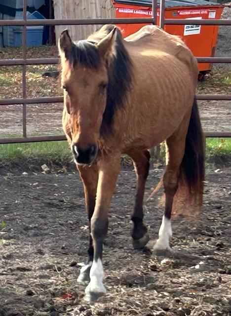 Winona is a branded mustang mare (DOB 2007) who came to us as an owner surrender in an October 2025 humane case. She was very thin at intake and was put on a careful refeeding program as well as having all of her intake veterinary care. She is gaining weight well. We will have more info on her soon.