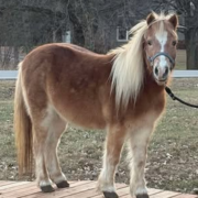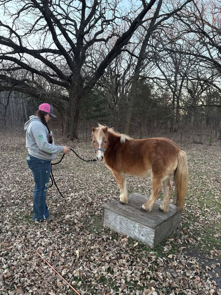 “Katie is an absolutely lovely little mare, in both looks and personality! She’s very gentle and eager to please. Picks up feet, stands for vet/farrier, leads, loads, and stands tied like a saint. She leads beautifully. This little mare is very soft. Walk, trot, halt, back, and side passes both directions. She’s taking to obstacles and jumping easily! Katie is broke to drive and has more go than whoa in harness. This gal likes to trot off. She’s quiet, gentle and flourishes with a light hand and lots of praise. If I were looking for another 4H mini to lease to kids, I’d snatch this mare right up!”