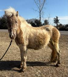 Teddy Bear came to us as a 2024 stud colt from a January 2025 Carlton County case in which we assisted an owner to surrender horses after multiple fines for loose livestock and inability to provide secure fencing. He has now received his initial intake veterinary care, has been gelded, and has been adopted by his foster home.